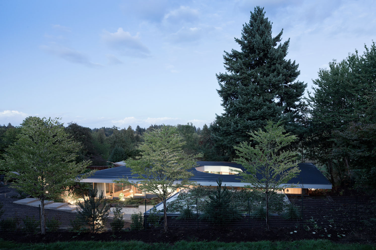 Location: The property perches on a lush, hillside site in Aurora, a tiny community in Northwest Oregon. The house overlooks protected wetlands and the Pudding River. ![]()