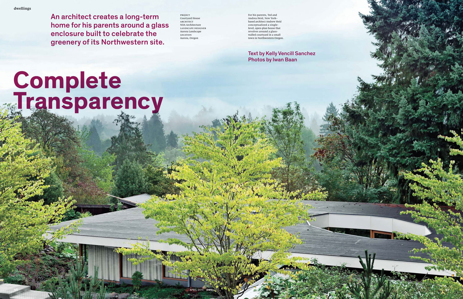 Courtyard House featured in April issue of Dwell. Text by Kelly Vencill Sanchez, photos by Iwan Baan Dwell Iwan Baan Studio See NOA on stage at Dwell on Design Visit WBS Construction Madden & Baughman Engineering Aurora Landscape |