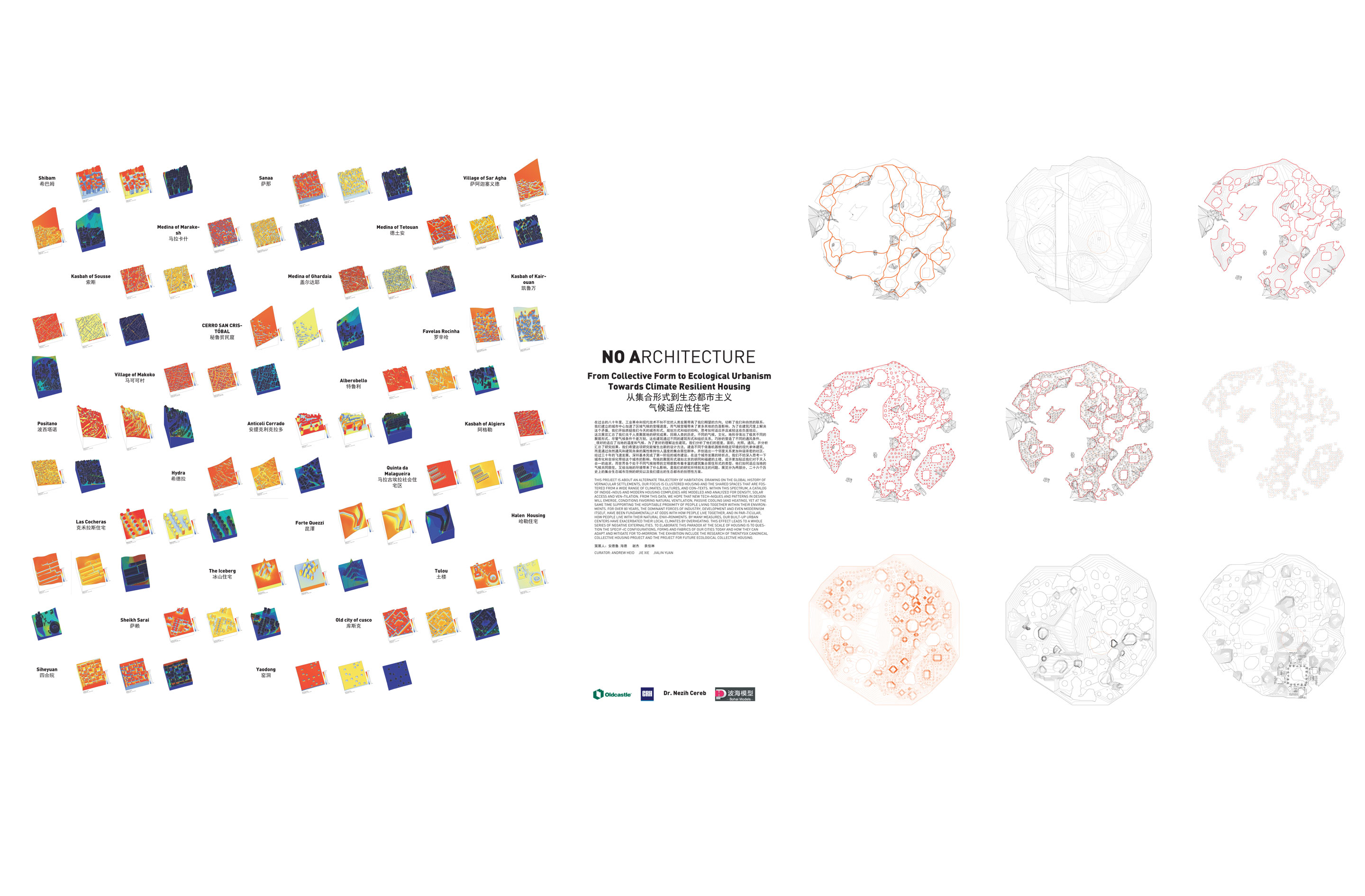 NO Architecture exhibits "From Collective Form to Ecological Urbanism: Towards Climate Resilient Housing" at the 2015 BI-CITY BIENNALE OF URBANISM ARCHITECTURE, Shenzhen, China. ![]() ![]() This exhibition is about an alternate trajectory of habitation. Drawing on the history of vernacular settlements, our focus is clustered housing and the shared spaces that are fostered from a wide range of climates, cultures, and contexts. Within this spectrum, a catalog of indigenous and modern housing complexes are modeled and analyzed for density, gross floor area, solar access and ventilation. From this data, we hope that new techniques and patterns in design will emerge, conditions favoring natural ventilation, passive cooling (and heating), yet at the same time supporting the hospitable proximity of people living together within their environments. ![]() ![]() For over 80 years, the dominant forces of industry, development and even modernism itself, have been fundamentally at odds with how people live together, and in particular, how people live with their natural environments. By many measures, our built-up urban centers have exacerbated their local climates by overheating. This effect leads to a whole series of negative externalities. To elaborate this paradox at the scale of housing is to question the specific configurations, forms and fabrics of our cities today and how they can adapt and mitigate for tomorrow. ![]() ![]() After thirty years of intense development, Shenzhen is close to finishing its first phase of building. At this critical moment, we have the opportunity to study and question the effects of rapid urbanization and globalization. From the Hutongs in Beijing to the clustered houses in Fujian, we hope to discover how people once lived together more harmoniously in the past, and with this catalog, we hope to inspire more harmoniously living with nature in the future. The research findings will be presented by a series of selected photos, analytical drawings and prototype models. ![]()