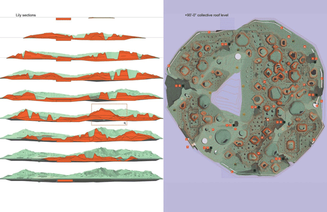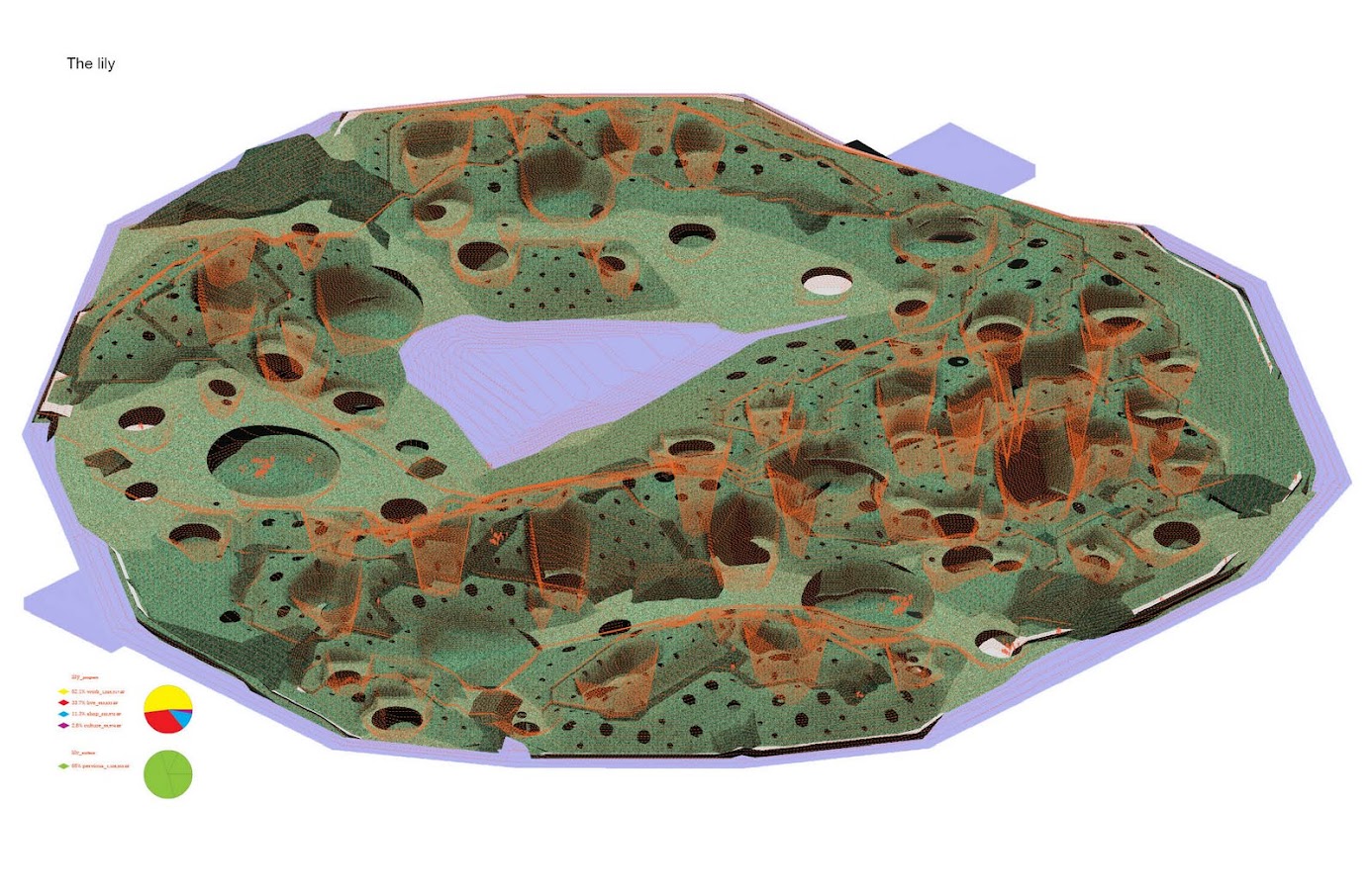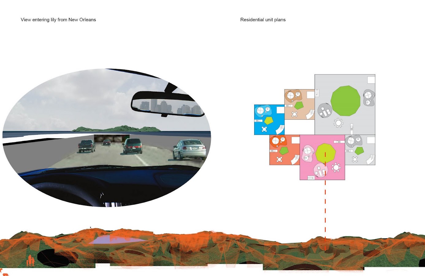 The contemporary city exists in a state of perpetual emergency: it ignores the alliance between architecture and urbanism, while simultaneously denying questions of large scale development. To elaborate this paradox today is to assume the question of the superblock: the clearance and development of sites larger than the conventional block. While this anti-type has often been denigrated by traditionalists, the SUPERPAD demands reconsideration with the passing of the metropolitan grid, whether by default, design, or destruction. The SUPERPAD offers two versions for metropolitan life after the grid, sponsored under conditions that range from saturated terrain to thickened air: the LILY and the CLOUD. The New Urbanist transect is taken as a literal site to reinvent plausible metropolitan life for the post-industrial city... there, like an archipelago of volcanic hotspots, a series of autonomous islands or superpads disperse and flock according to opportune sites of contradiction: from super-metropolitan islands in swamp wilderness to derlirious ruralism in depopulated inner-city quarters... like tectonic plates, the program envelope is defined by an upthrust of parking, cordoning offices and connecting work to live, while the subduction of a green carpet voids for light and air... instead of consuming ground, density here makes new ground in a liberating moment of free plan and free section.